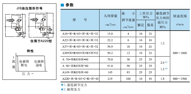 "A" Series Variable Displacement Piston Pumps·Single Pump, Pressure Compensator with Unloading Type
